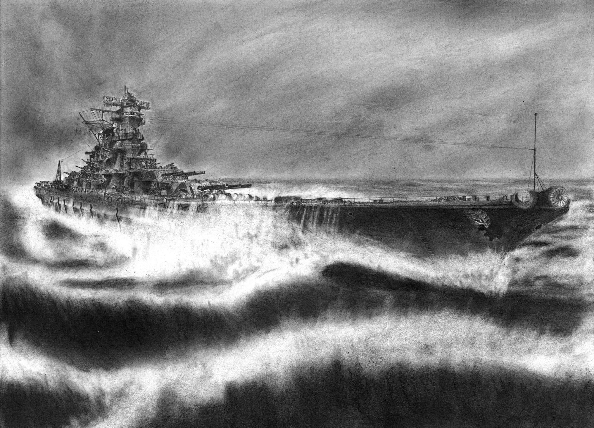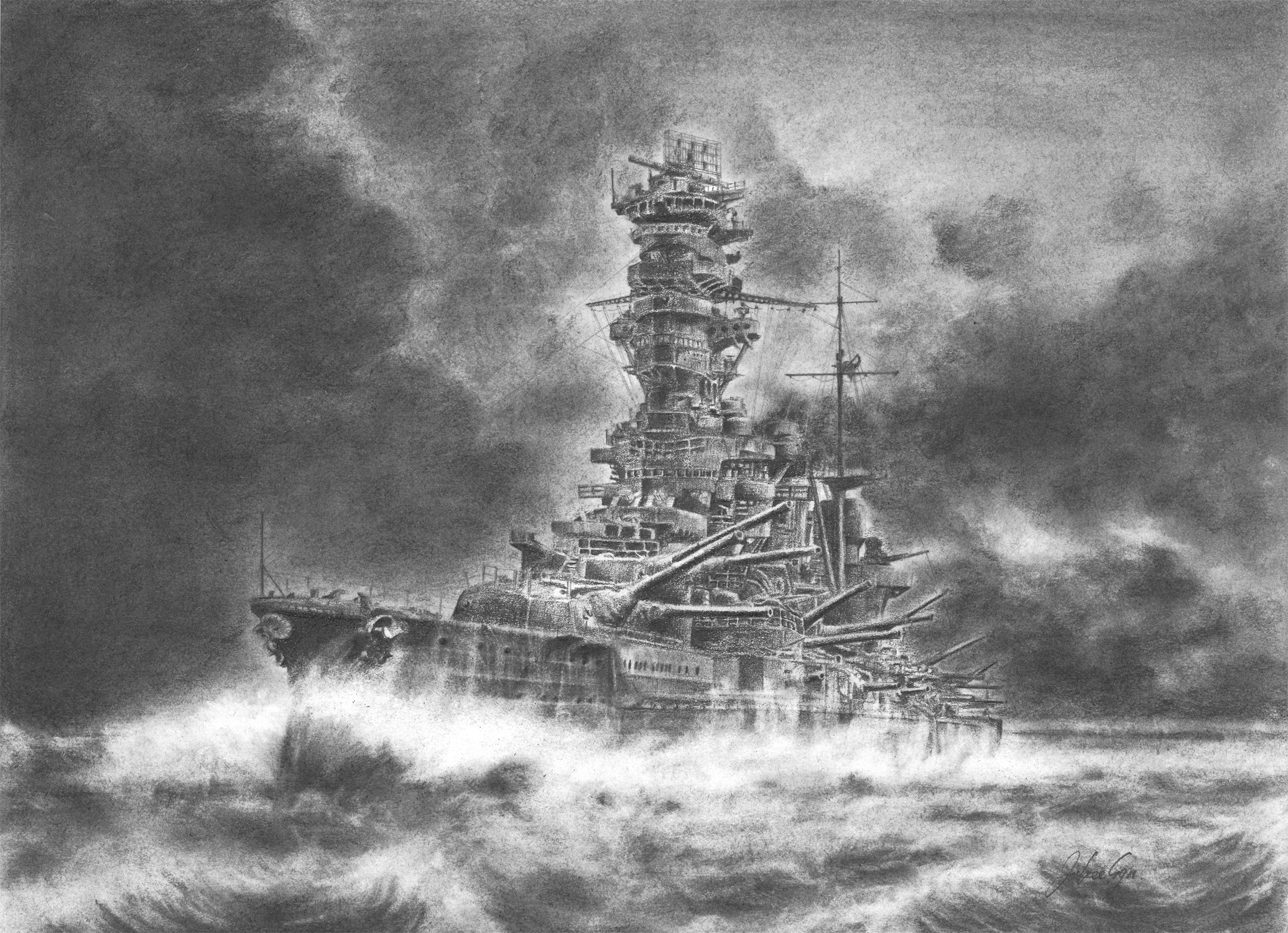 史上最大の46㎝主砲を搭載した、桁違いの巨大戦艦でした。 真珠湾攻撃の8日後に竣工し、以後連合艦隊旗艦となりました。