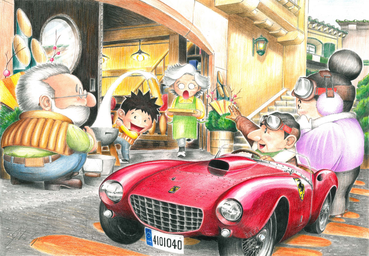 『出会い』をテーマに描いた作品です。愛車「エミール」に乗ってピクニックにでかけた、じいちゃんとボク。