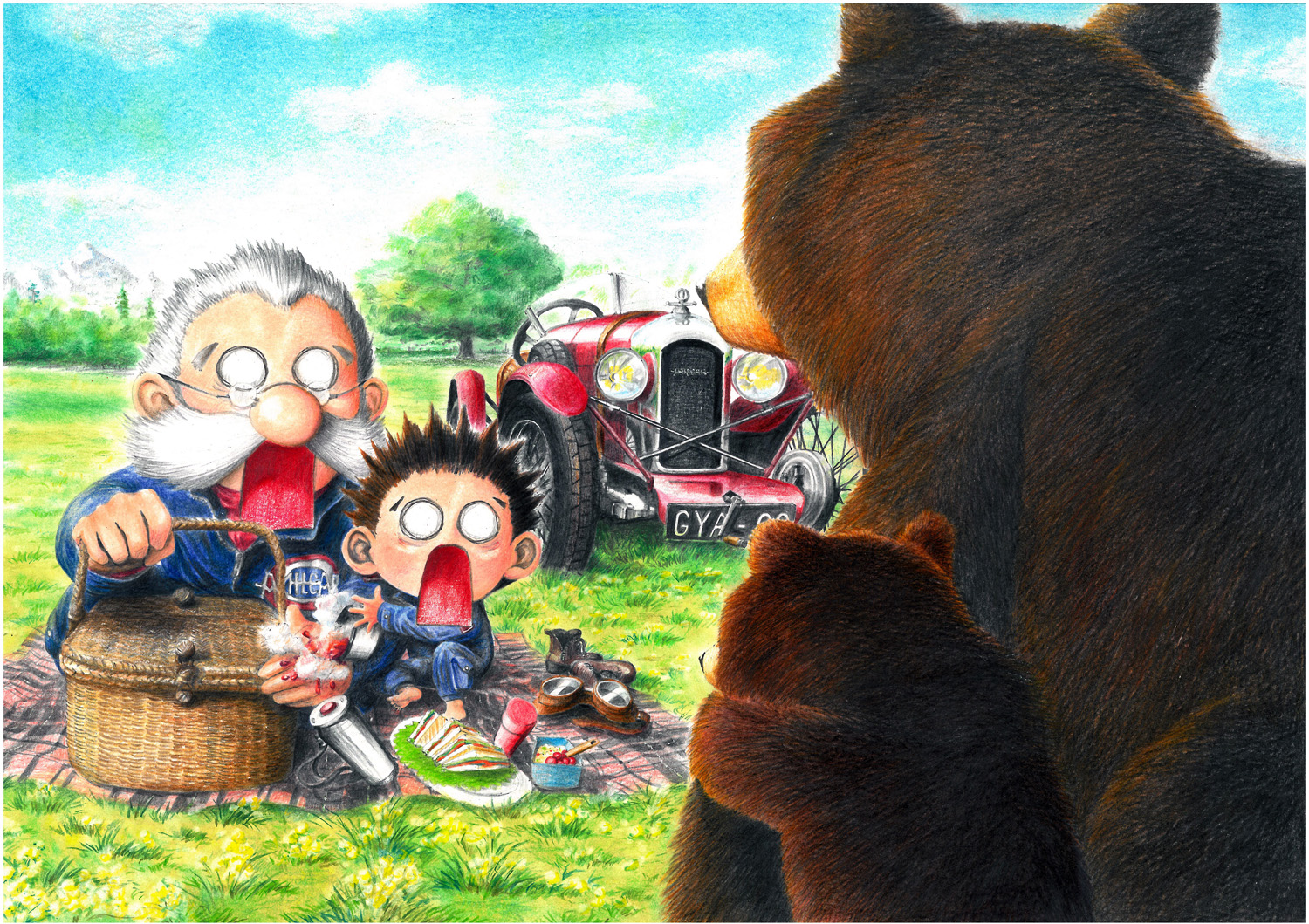 じいちゃんとボクはびっくり、エミールもびっくり、クマの親子もきっとびっくり-----「みんなびっくりピクニック」