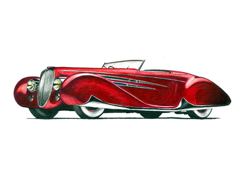 1929年の世界恐慌以後の混沌とした情勢の中、30年代のフランスに出現した時代錯誤的な豪華で耽美なデザインをまとった車です。特に、この時代の象徴的なボディ架装を行ったのが、フランスのカロスリー「Figoni Et Falaschi」でした。